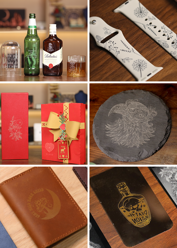 - 355nm wavelength, perfect for engraving on glass, silicone, paper, wood, plastic, and more